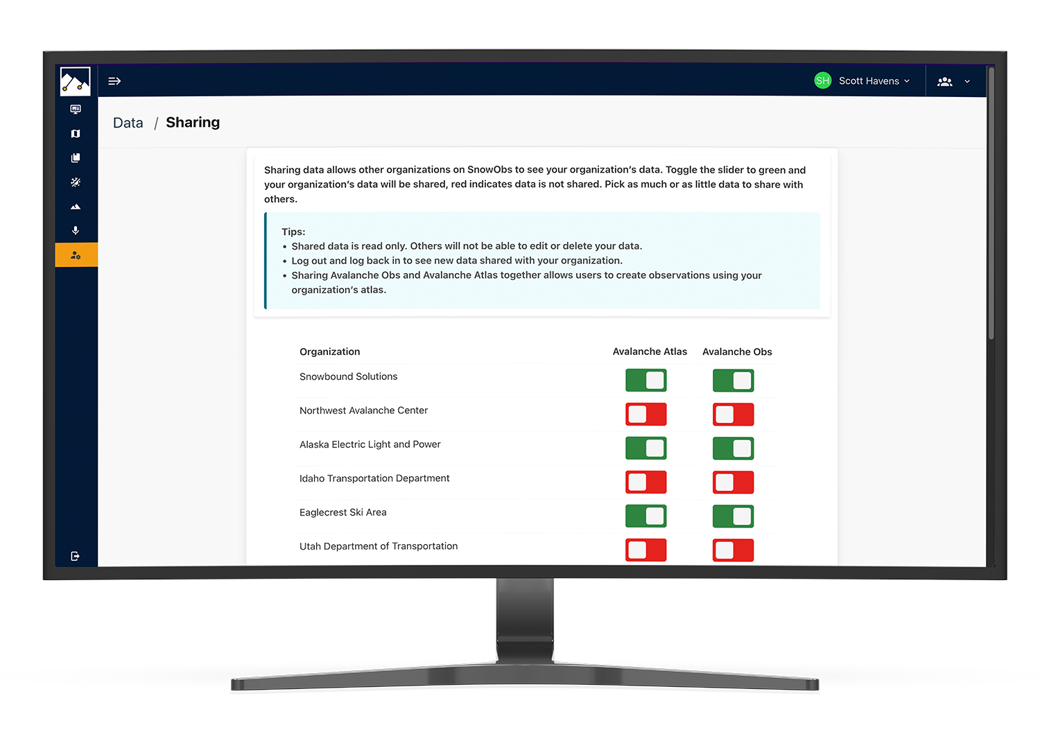 - Sharing with other organizations within SnowObs